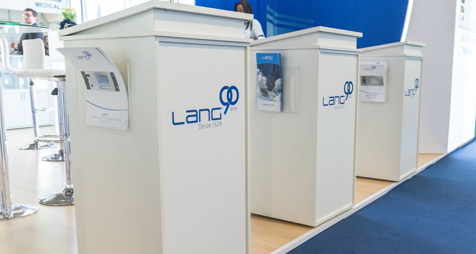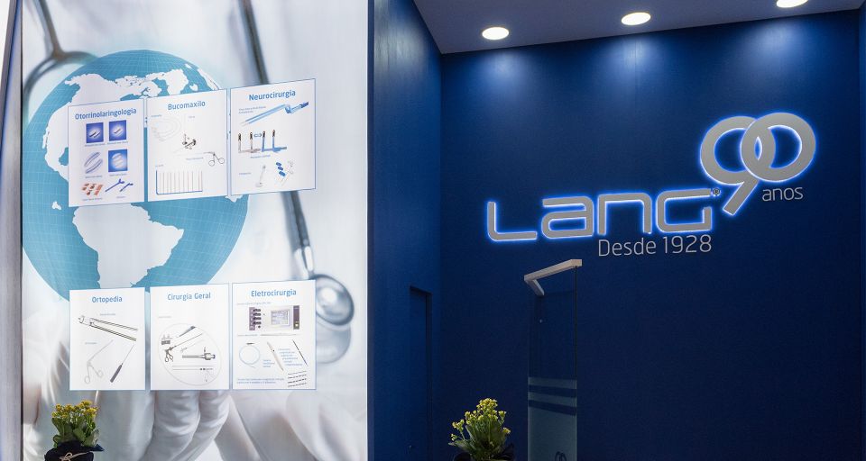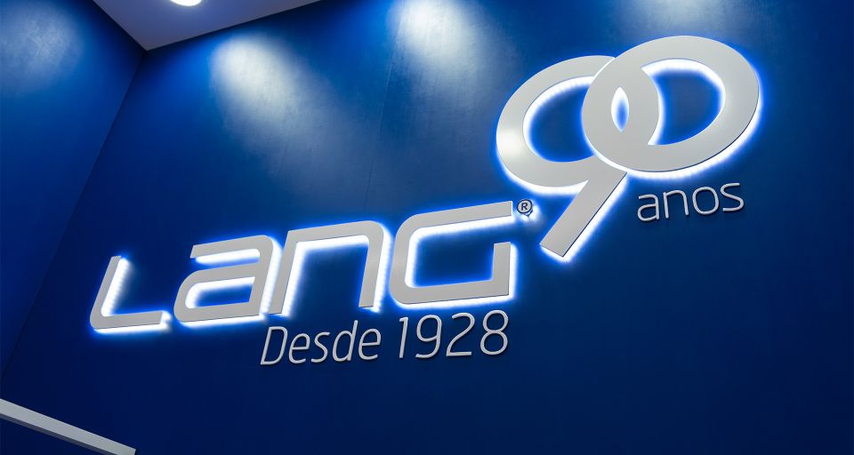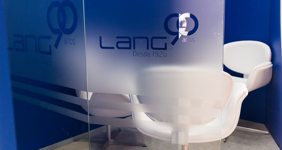 A Lang é uma empresa que comemora 90 anos de existência, sempre fabricando produtos inovadores e com tecnologia de ponta. O estande foi projetado para celebrar o aniversário da marca, transmitindo solidez, modernidade e credibilidade.